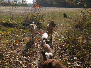 I have a small herd of Nubian and Nubian cross dairy goats that provide milk for my family to drink. I also use the milk to make my hand and body soaps and lotions. I chose Nubians because they have the highest butterfat of the full sized breeds plus I just really love the way they look! Here is my little goat family coming in from grazing out in the field.